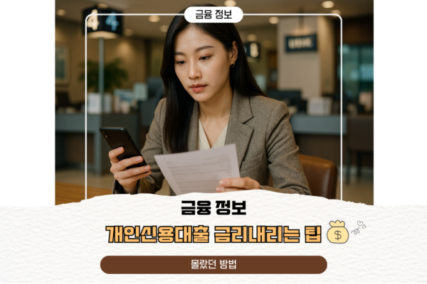 개인신용대출 금리내리는 팁, 몰랐던 방법 2025년 현재, 국내 가계대출 잔액은 약 1,100조 원을 넘어서며 개인의 신용대출 이용률도 계속 증가하고 있다. 특히 물가 상승과 금리 인상 기조 속에서 많은 사람이 대출금리에 민감하게 반응하고 있으며, 같은 조건이라도 금리 차이로 인해 상환 부담이 크게 달라진다. 👉 알아두면 좋은 금융 이야기 👉 알아두면 좋은 금융관련 주요용어 하지만 신용대출을 받을…