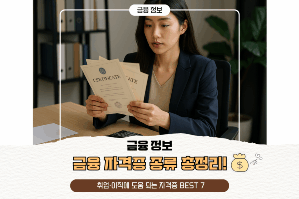 💼 금융 자격증 종류 총정리! 취업·이직에 도움 되는 자격증 BEST 7 ✍️ 금융권 이직·취업, 어떤 자격증부터 따야 할까? 금융권은 언제나 취업·이직 인기 1순위로 꼽히는 업종입니다.그러나 경쟁이 치열한 만큼, 전문성과 차별화된 자격이 요구되는데요.특히 2025년 현재 금융권 공채 및 채용 트렌드를 보면, 단순 ‘스펙’보다 실무형 자격증 보유 여부가 합격의 열쇠가 되고 있습니다. 이 글에서는 금융권 취업·이직에 실질적인…
