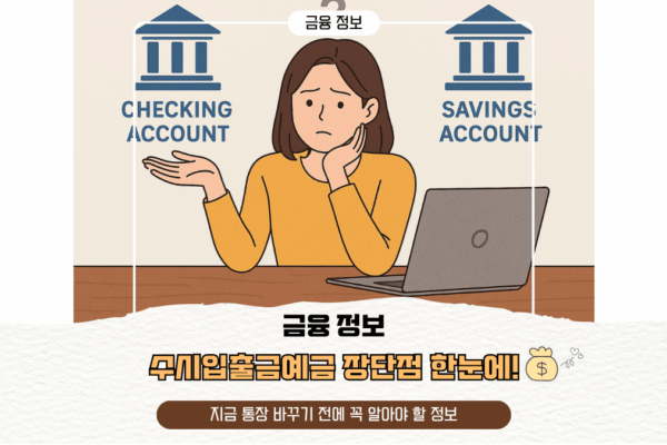 💰 수시입출금예금 장단점 한눈에! 📌 지금 통장 바꾸기 전에 꼭 알아야 할 정보 여러분은 지금 어떤 통장을 사용하고 계신가요?많은 사람들이 기본적으로 사용하는 은행 상품이 바로 **수시입출금예금(보통예금, 저축예금)**입니다. 😌 언제든 입출금이 가능하고 급여 이체나 자동이체, 공과금 납부 등 실생활에서 꼭 필요한 통장이죠.하지만 최근 금리 변화, 다양한 금융 상품 출시로 인해 “수시입출금 통장만으로 괜찮을까?” 하는 고민이 커지고…