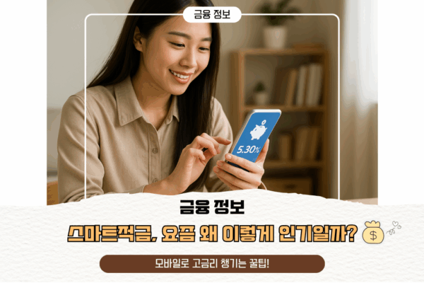 📱 스마트적금, 요즘 왜 이렇게 인기일까? 💸 모바일로 고금리 챙기는 꿀팁! (2025 최신 트렌드 분석) 2025년, MZ세대부터 50대까지‘적금 재테크’에 다시 불이 붙고 있습니다! 🔥 특히 스마트폰만 있으면 간편하게 가입하고고금리 혜택까지 받을 수 있는 스마트적금은이자율은 물론이고, 자동화 기능·미션형 보상까지 갖춘디지털 시대의 저축 필수템으로 자리잡았죠. 그렇다면 도대체 왜 요즘 이렇게 스마트적금이 인기를 끌까요?실제 상품, 혜택, 고금리 조건까지5,000자…
