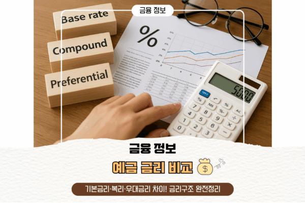 💰 예금 금리 비교! 기본금리 · 복리 · 우대금리 차이 완전정리 📊(2025년 최신 금리 구조로 재정리) 📌 “금리가 5%라고 해서 가입했는데, 이자 얼마 안 돼요?”📌 “복리랑 단리, 우대금리는 뭔 차이죠?”📌 “예금 상품 고를 때, 뭐부터 봐야 하죠?” 요즘 정기예금, 적금, 스마트적금에 관심 있는 분들이 많은데요,막상 가입하려고 보면 용어가 너무 헷갈립니다. 😰 기본금리? 우대금리? 복리? 단리?다…