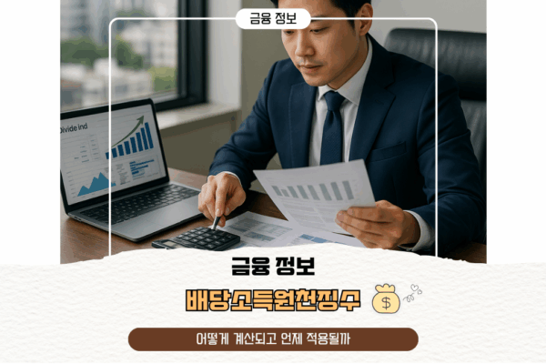배당소득 원천징수, 어떻게 계산되고 언제 적용될까? 📈💡 1. 배당소득이란? (기본 개념부터! 🚀) 배당소득이란, 주식·펀드·리츠 등 금융투자상품을 보유한 투자자가기업(또는 펀드)로부터 받는 이익분배금(현금·주식 등)을 말합니다.가장 대표적인 예는 상장회사 배당금입니다. 중요 포인트:배당을 받으면 곧바로 현금이 들어오는 것 같지만,사실 세법상 ‘소득’으로 분류되어 세금이 자동으로 원천징수(자동차감) 됩니다. 2. 배당소득세(원천징수)의 구조와 세율 (2025년 기준) 🧾 📌 2025년 대한민국 배당소득세율 ✔️ 예시…