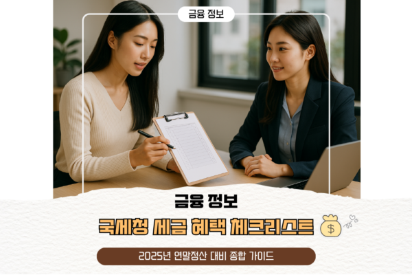 국세청 세금 혜택 체크리스트 – 2025년 연말정산 대비 종합 가이드 세금 혜택, 챙기지 않으면 손해입니다 2025년 기준, 대한민국 국민의 소득세·부가가치세 등 국세 부담은 꾸준히 증가하고 있습니다. 이에 따라 국세청은 다양한 세금 공제·감면 제도를 마련하여 국민의 세금 부담을 완화하고 있습니다. 그러나 이러한 혜택은 신청자 스스로 챙겨야 받을 수 있는 구조로 되어 있어, 관련 제도를 정확히 알고…