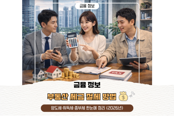 부동산 세금 절세 방법 |양도세·취득세·종부세 한눈에 정리 (2026년) 2026년 현재, 부동산을 보유하거나 매매하는 국민이라면 누구나 세금 문제를 피할 수 없다. 특히 정부의 부동산 세제 정책은 최근 몇 년간 가장 빠르게 바뀐 분야 중 하나로, 단순히 ‘집을 팔면 양도세’, ‘살 때 취득세’ 수준으로는 더 이상 이해하기 어렵다. 부동산 시장 안정과 실수요자 보호를 목표로 정부는 **양도소득세, 취득세,…