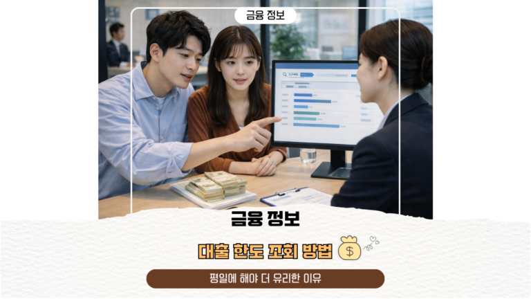 대출 한도 조회 방법, 평일에 해야 더 유리한 이유 대출 한도는 단순히 ‘신청하면 나오는 수치’가 아니다. 조회 시점에 따라 결과가 달라질 수 있으며, 조회 시간대나 전산 연동 여부, 외부 기관의 응답 속도에 따라 정확도가 달라질 수 있다. 👉 신용점수 올리는법 30일 실천 루틴 👉 부동산 세금 절세 방법 👉 주식 세금 아끼는 법 특히 온라인에서…