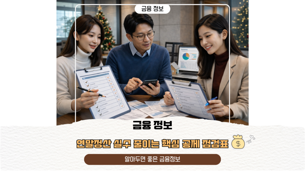 연말정산 실수 줄이는 핵심 공제 점검표 연말정산은 ‘13월의 월급’이라고 불릴 만큼 기대가 크지만, 공제 요건을 잘못 이해해 세금을 더 내는 경우도 적지 않다. 국세청은 매년 공제 오류가 반복되는 사례를 분석해 ‘연말정산 오답노트’를 공개하고 있다. 특히 2025년 귀속분부터 적용되는 제도 변경사항이 반영되면서 기존에 받았던 공제가 달라질 수 있으므로 주의가 필요하다. 👉 부동산 체납확인방법 👉 2026년 국민연금…